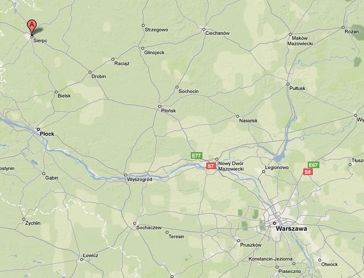 (Warszawa). You can see that Sierpc is Northwest of Warsaw and